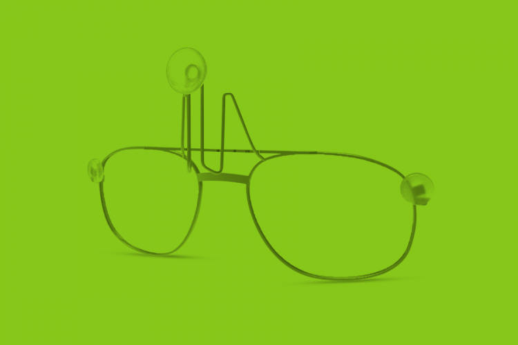 Een gasmaskerbril met een zuignap , deze wordt binnen op het venster van het volgelaatsmasker gepositioneerd